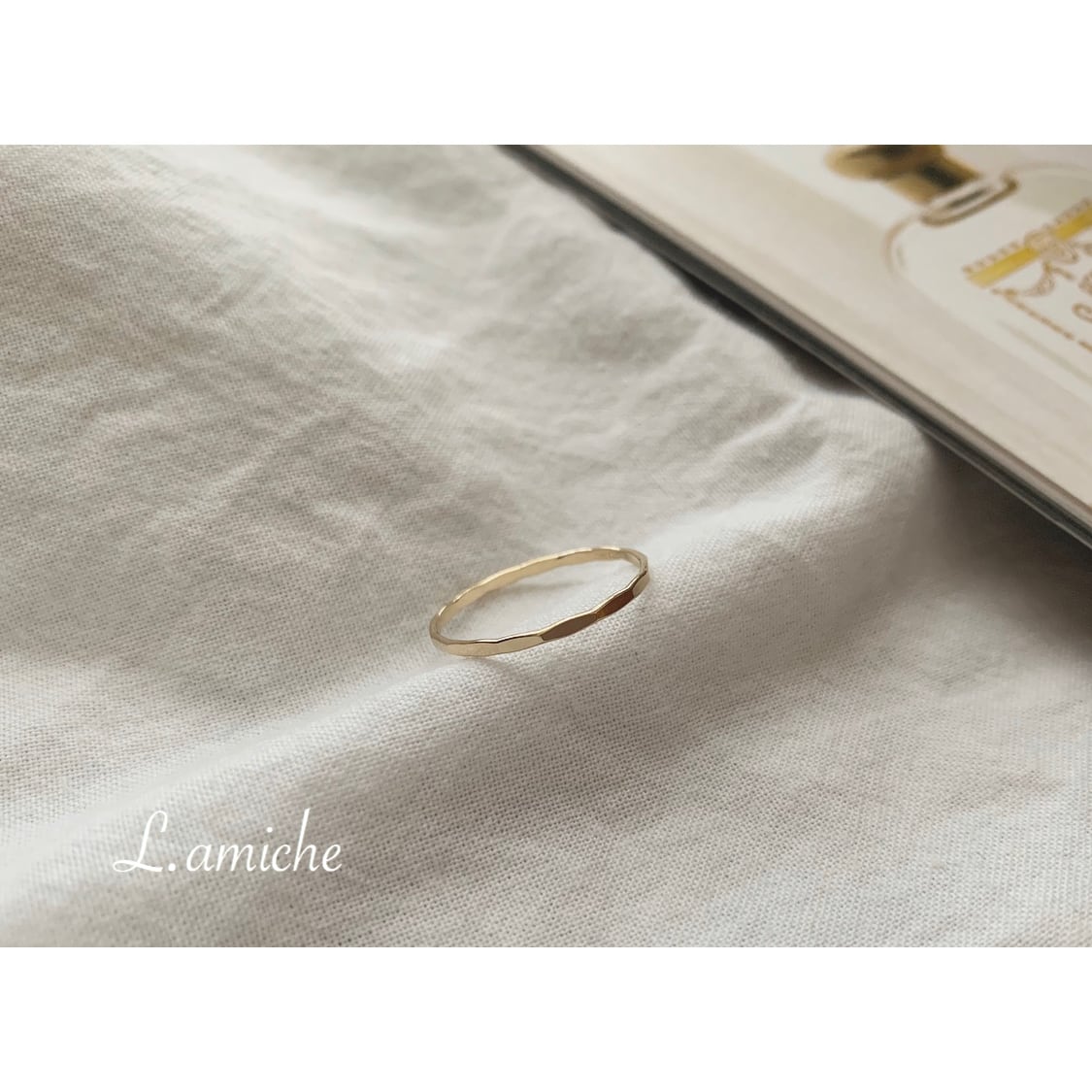 ハンマード加工されたデザインのリングです。